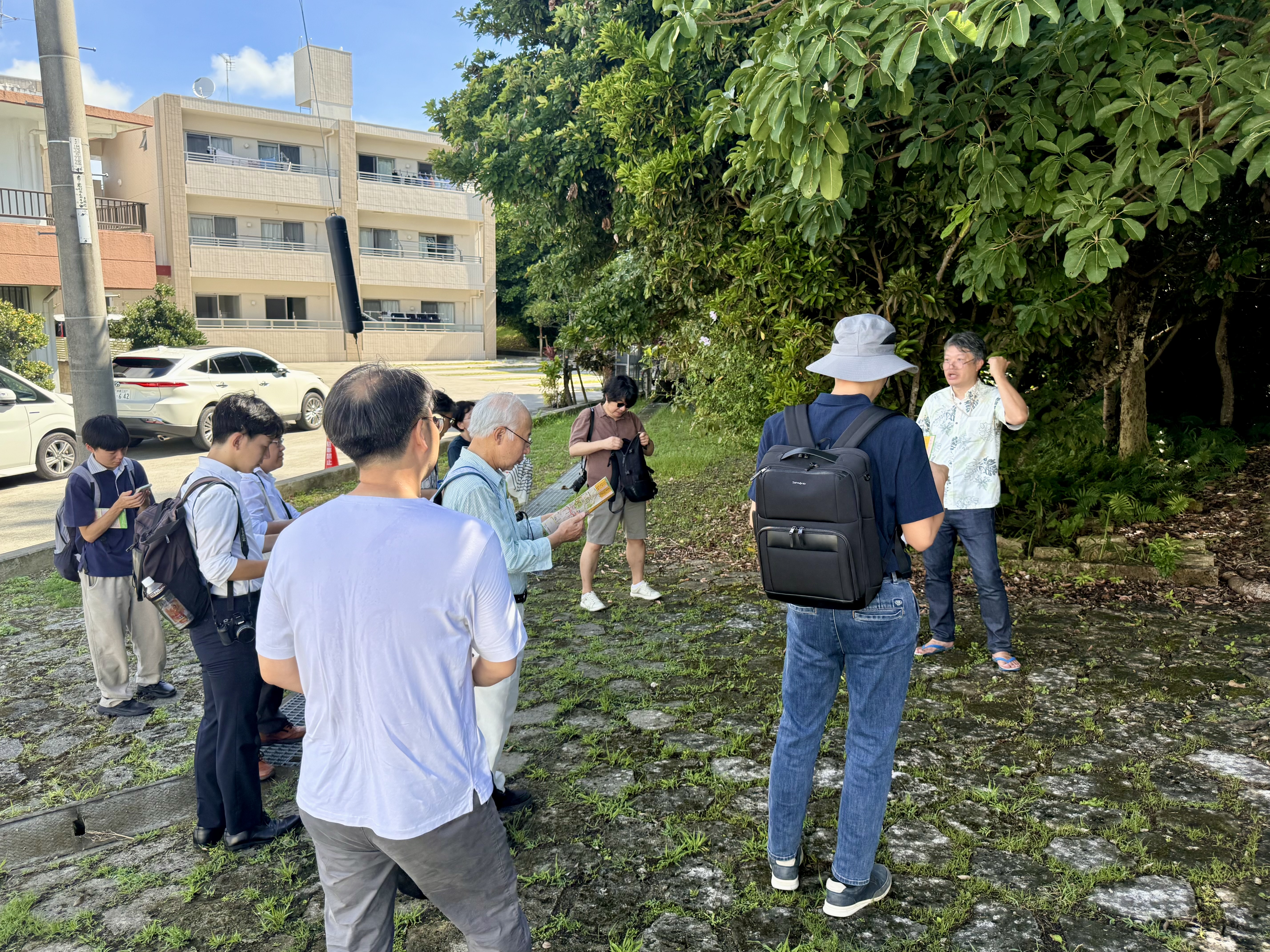 「首里城と首里城下」を主題とした巡検では,首里城の地形的な立地条件や城下の様子について現地を歩きながら議論を深めました。
